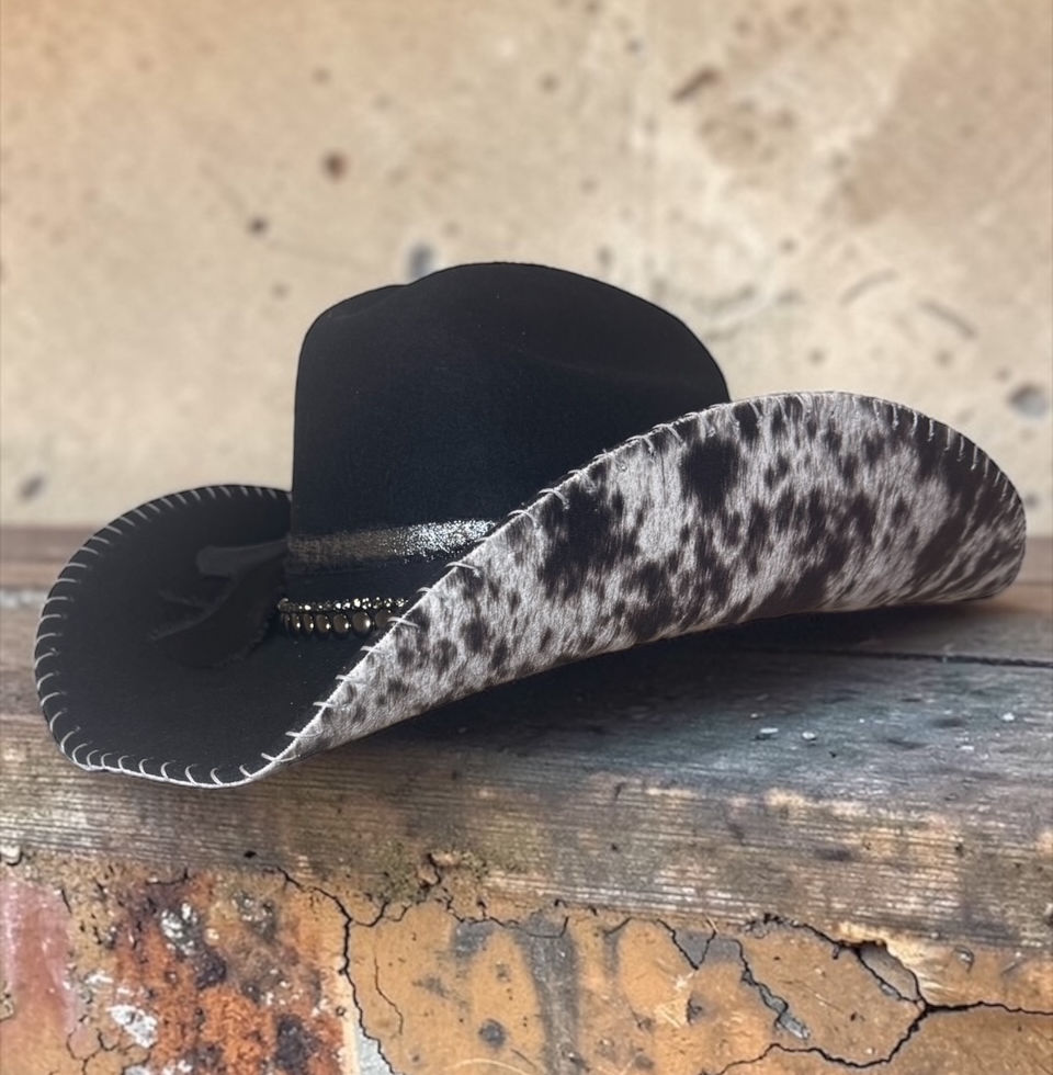 From the Cowhide Collection, this bold black statement piece is made for the woman who owns every room she walks into. Crafted from 100% premium black wool, it delivers timeless western structure with a modern, elevated edge.